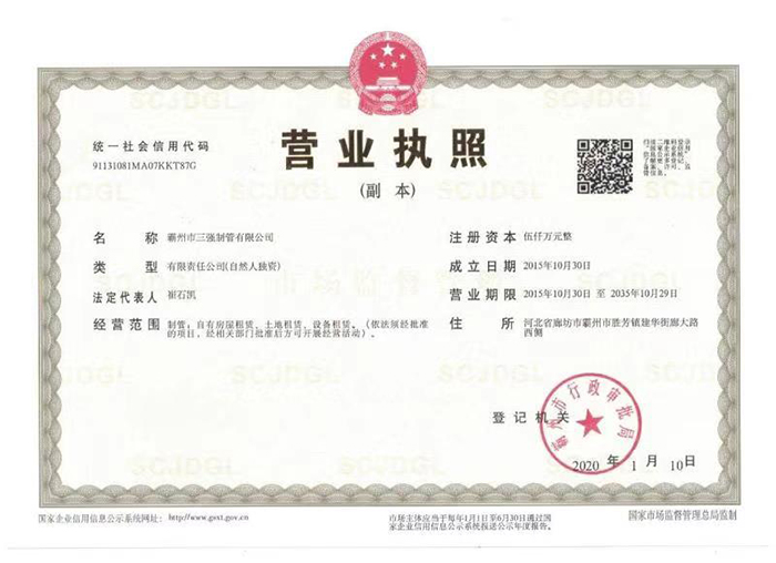 霸州市三強(qiáng)制管有限公司成立于2014年10月,公司坐落在北方工業(yè)重鎮(zhèn)勝芳鎮(zhèn)廊大路西側(cè)(津保高速勝芳出口南1公里),交通便利。公司占地70畝,擁有先進(jìn)的焊管機(jī)組、固態(tài)高頻、冷切鋸,并擁有先進(jìn)的冷彎型鋼機(jī)組,配有相應(yīng)的沖孔、激光加工設(shè)備,整鏈條式服務(wù),質(zhì)量?jī)?yōu),交期塊。